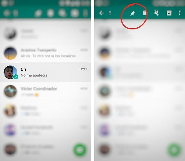 Podemos fijar el chat de un contacto en la parte de arriba y que no sea desplazado hacia abajo al recibir nuevos chat (muy útil cuando recibimos muchos chats de varios contactos y queremos acordarnos y darle prioridad a uno de ellos)