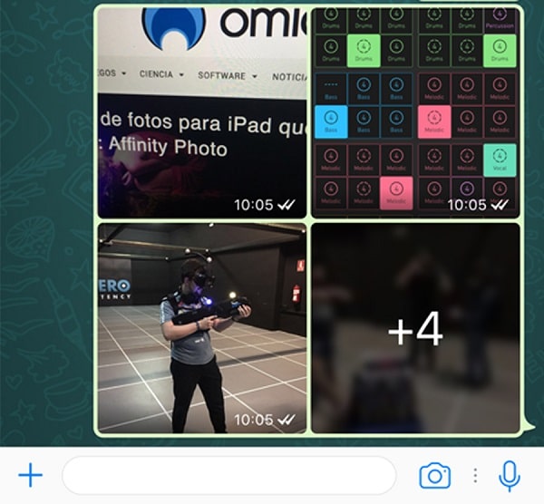 Al recibir 4 o más fotos seguidas de un contacto estas irán dentro de un álbum que recibiremos en un mensaje. Al abrir el álbum podremos ver las fotos en una lista ahorrando de esta forma espacio y memoria en nuestro móvil. Wasap también incorpora los filtros pop, blanco y negro, cool, chrome y película para fotos, GIFs y vídeos.